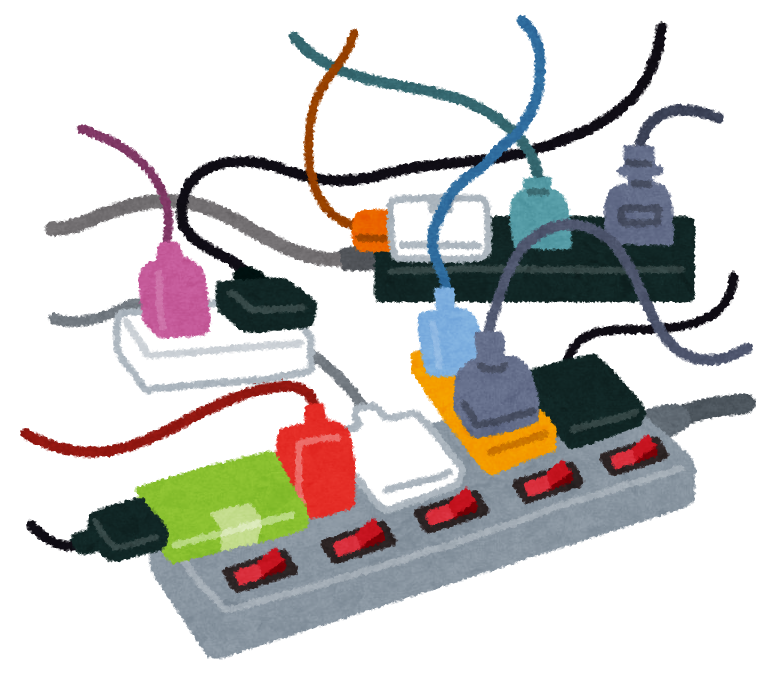 ②純粋に電気機器が多い場所や、レイアウトや便利さのためにタコ足配線を多用している場所では、コンセントの数だけ電源プラグとの接点が増え、トラッキング現象発生の確率が上がります。