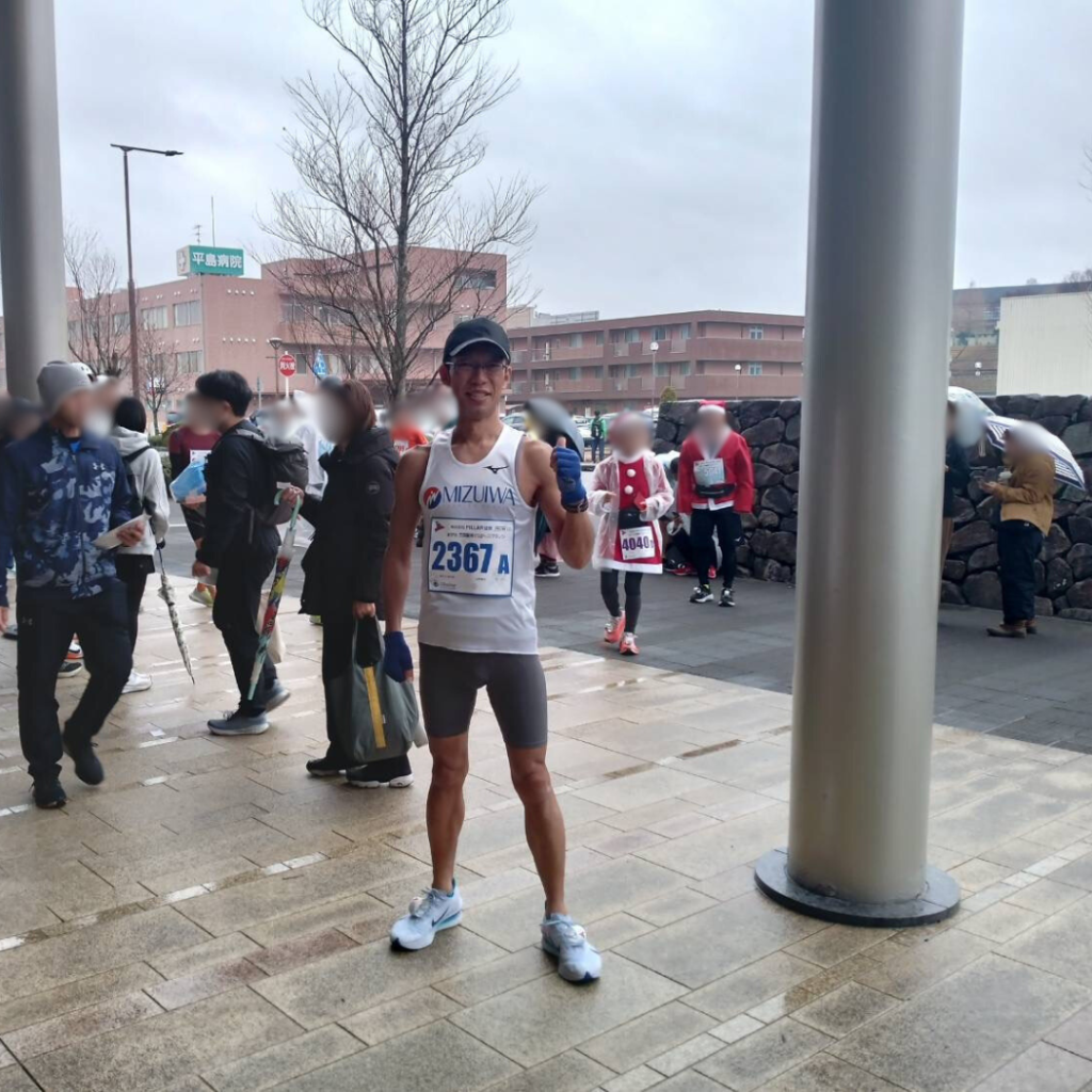 朝は小雨模様でしたが、走り出す頃には雨もやみ、田園風景が広がるコースを気持ちよく走ることができました。厳しい場面もありましたが、沿道の温かい応援に背中を押され、最後まで粘りの走りができました。