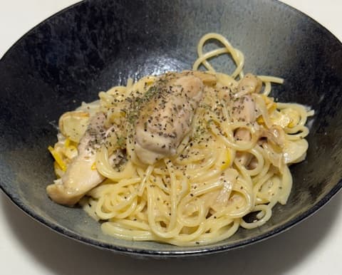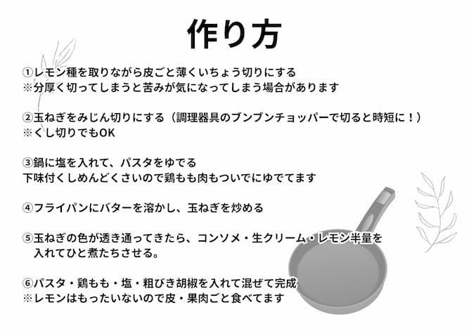 • レモンクリームパスタ 節約ズボラ飯の晩酌アイデアを紹介!③【物価高対策】