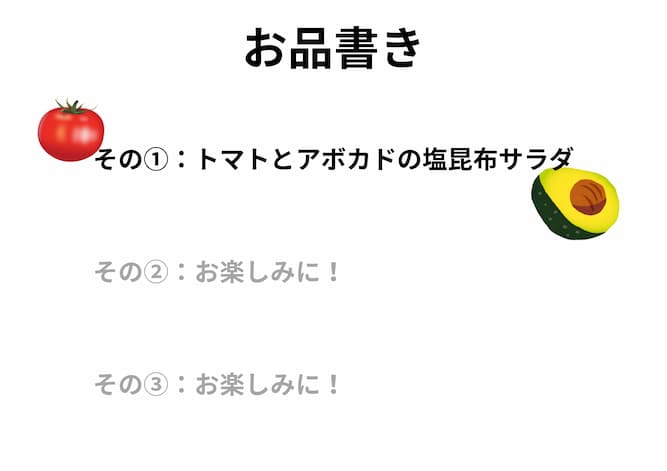 第1回は「前菜」 トマトとアボカドの塩昆布サラダです。